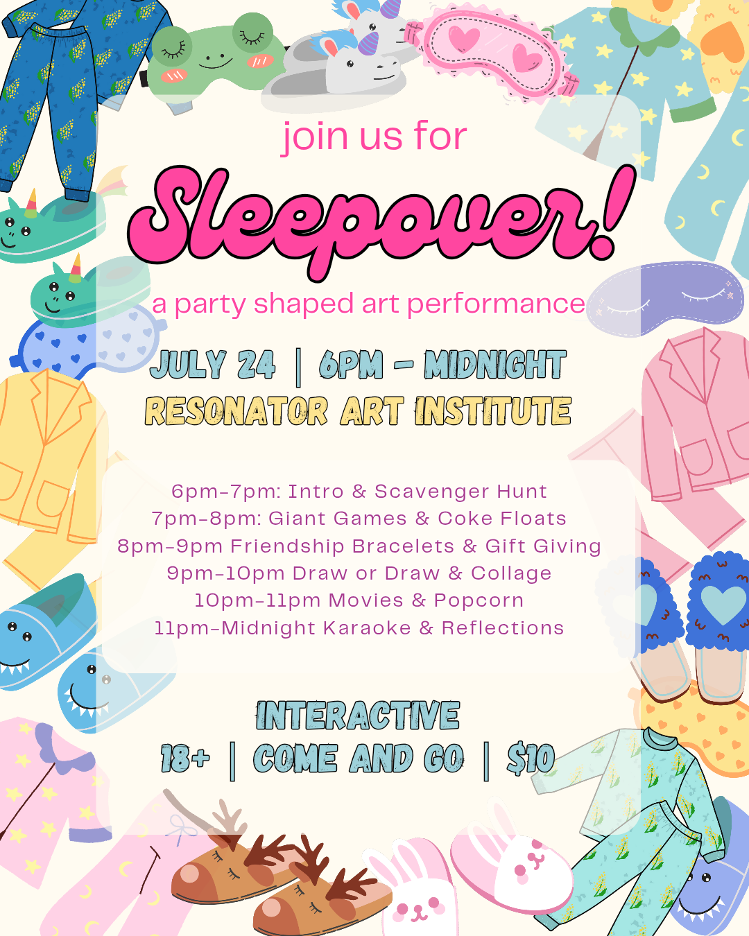 THE HAPPENINGS part VI of VI— Sleepover! Hosted and Curated by PK Kaya Ready For More? Future Tickets Subscribe to Our Newsletter Sign up with your email address to receive news and updates. Email Address Sign Up Thank you!